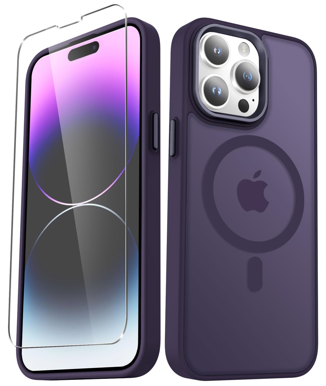 for iPhone 14 Pro Max Case, Matte Magnetic Phone Case with 1 Screen Protector, Support for Magsafe, Translucent Frosted Slim Shockproof Protective Cover for iPhone 14 Pro Max 6.7 inch, Purple