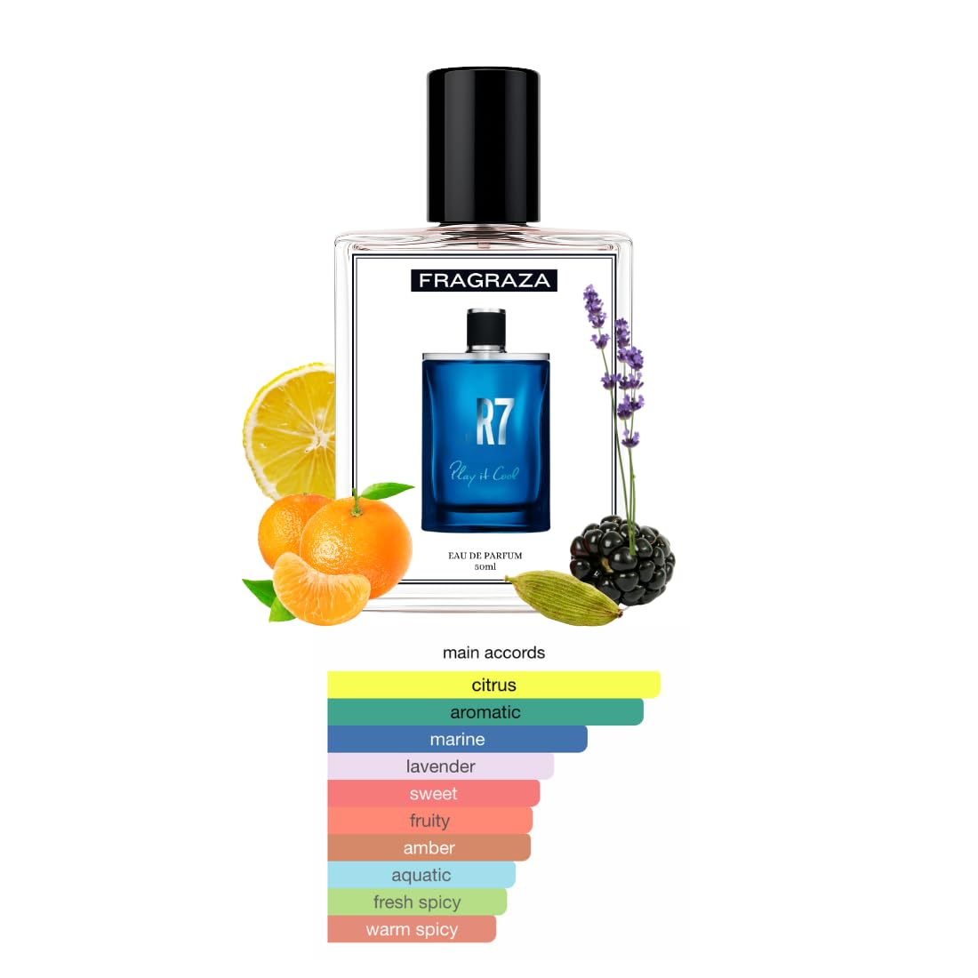 Energize your senses with Fragraza CR-Seven Blu, a fresh, sporty Eau de Parfum inspired by the vibrant and confident vibe of CR7 Blue by Cristiano Ronaldo (not affiliated). Designed for the active man who lives life with passion and bold energy, this fragrance brings together clean aquatic freshness, aromatic herbs, and sensual woods for an invigorating scent that keeps up with your lifestyle. Whether you’re heading to the gym, work, or a night out, CR-Seven Blu is your perfect everyday fragrance that radiates strength, charisma, and cool sophistication.
