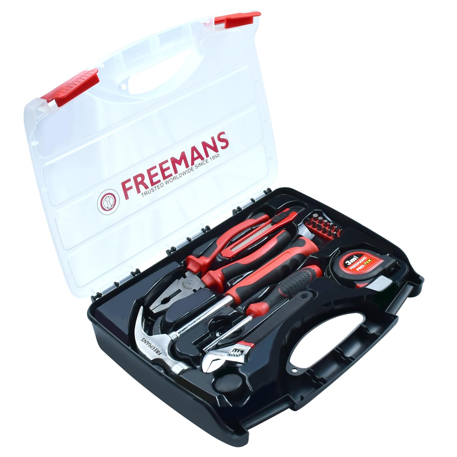 FREEMANS DIY19 Hand Tool Kit – 19 Piece Household Repair & Maintenance Set, Includes Hammer, Wrench, Pliers, Screwdriver Bits, Cutter & Tape, Portable Tool Box for DIY, Home, Office & Car Use
