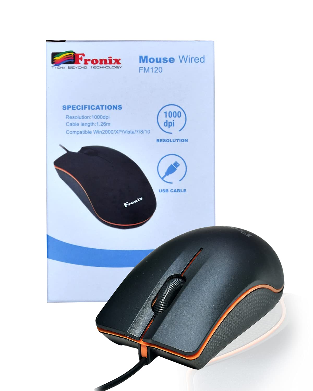 Fronix Wired Mouse : The quick, comfortable mouse that helps you get more work done. Fronix Hyper-Fast scroll wheel and a precise Optical sensor make this mouse one very capable companion. The sculpted design gives you the support you need for work or for play. Fronix Optical technology: Fronix Optical technology delivers smooth, accurate performance on virtually any surface, Comfort for either hand, the latest PC Optical Mouse design makes clicking and scrolling more comfortable and convenient – no matter which hand you use. Plug-and-Play Simplicity: No software, no hassles—you simply plug in the USB and start using your mouse right away. Back/Forward buttons: Moving quickly between documents or browsing your favorite Web sites is a breeze with large, easy-to-reach Back/Forward buttons. Comfy, Contoured Shape: The contoured design feels good in right hand and offers more comfort than a touchpad. Specifications : DPI Resolution: 1000 Receiver interface: USB version 2.0 Maximum speed: 25Inch/sec Acceleration: 15G Operating Voltage: 4.75V 10% Operating Current: 50mA Weight: 98g Cord Length: 4.9ft (1.5m) Compatible: Windows 2000, XP, VISTA, 7, 8, Chromebook, Mac (side buttons not work on Mac) Box Contains: 1 x Fronix wired Mouse 1 x Manual 1