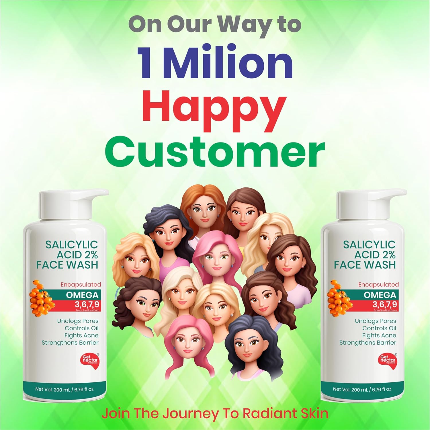 Get Nectar Happiness Korean Glow Essence Face Wash for Oily & Acne-Prone Skin | 2% Salicylic Acid | Encapsulated | Omega 3,6,7,9 | Unclogs Pores, Controls Oil, Fights Acne, Soothes Redness 200ml