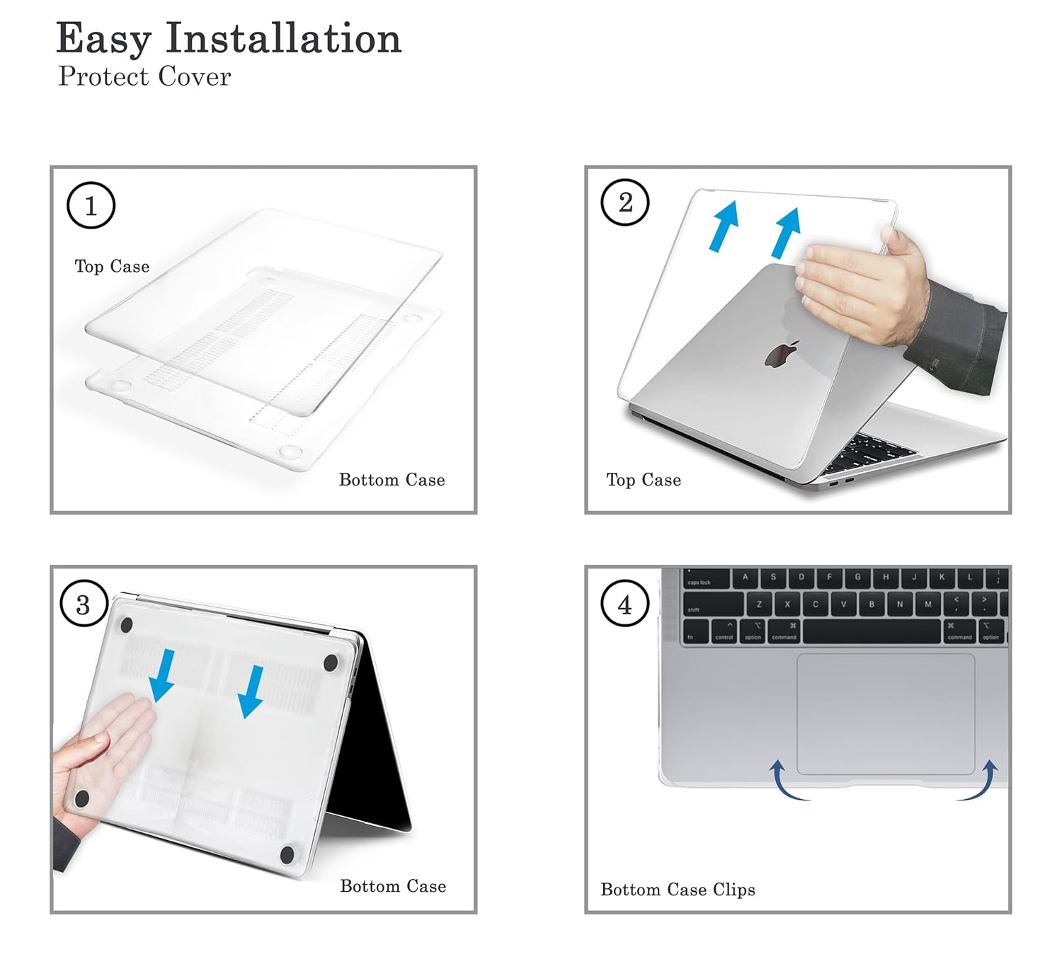 Package Includes : 1 × MacBook Case, 1 × Keyboard Cover, 1 × Screen Protector, 1 × Touch Pad Protector, 1 × Dust Plugs