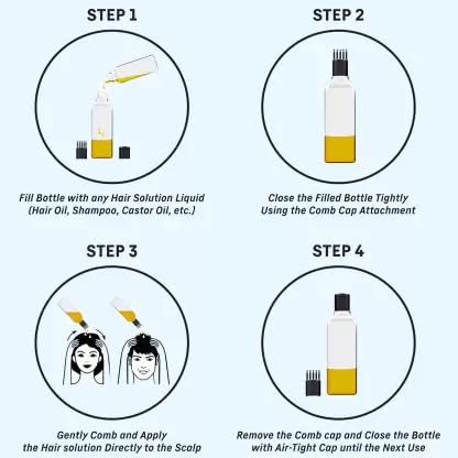 Glamezone Hair Root Applicator Bottle with Comb Cap for Applying Hair Oil Shampoo Medicine 100 ml Bottle (Pack of 4, White, Plastic)