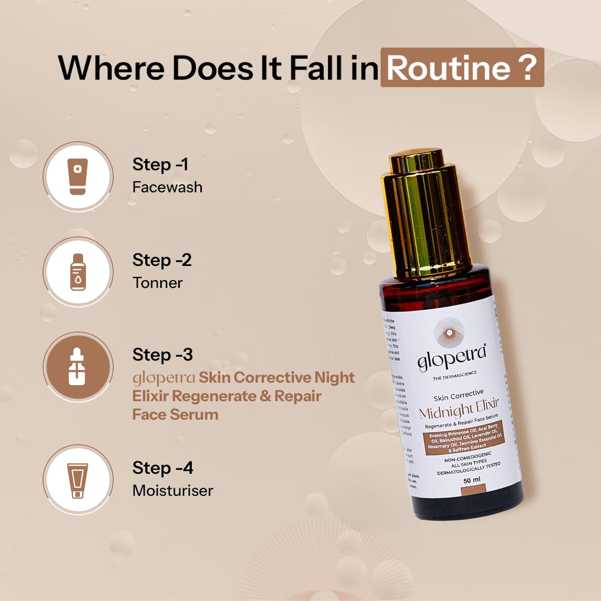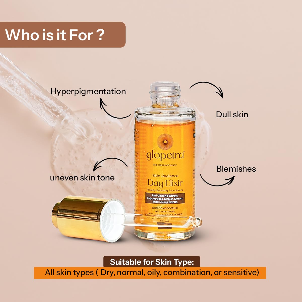 Glopetra Face Serum Set, Day and Night Elixir, 50 ml Each, Non-Comedogenic
