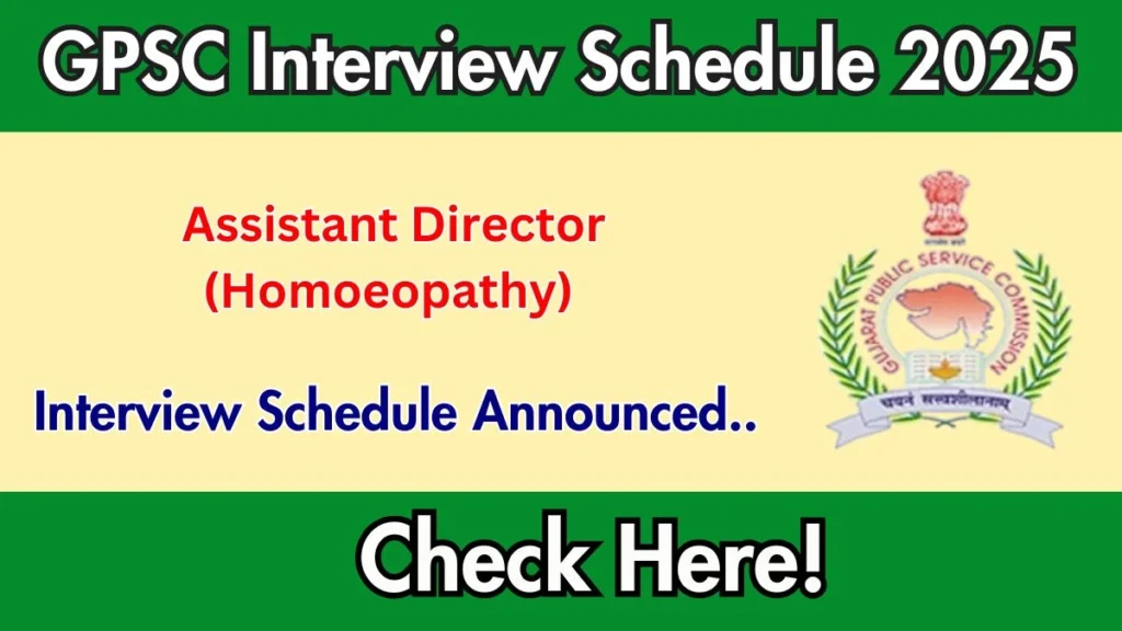 GPSC Assistant Director (Homoeopathy) Interview Schedule 2025 is officially notified.