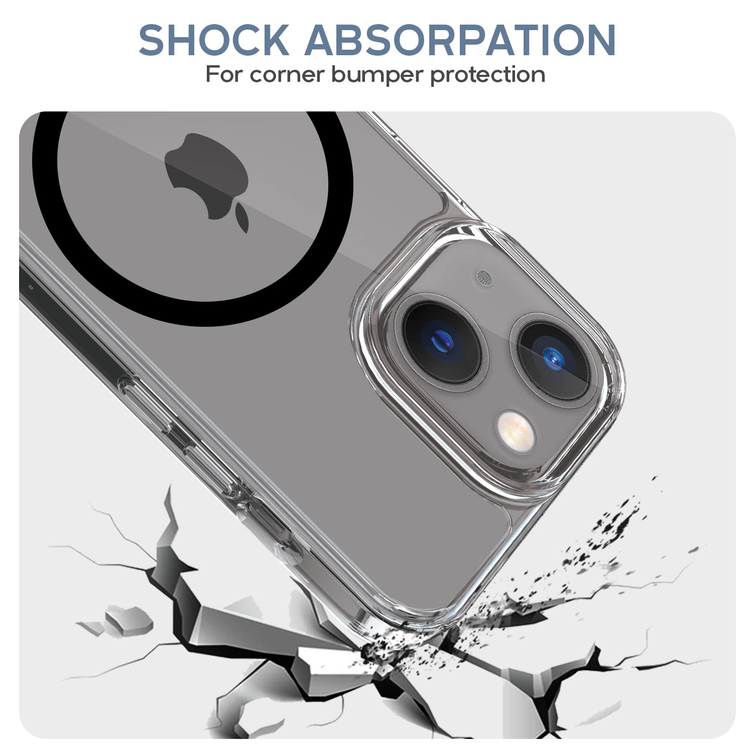 DROP HYBRID PROTECTION ► Featuring two layers of protection; a shock-absorbing frame with soft TPU edges air guard on all 4 sides for extra protection against drops, and a solid hard crystal clear back panel made of 3H rated premium polycarbonate UV material that offers superior scratch protection. Heavy duty shock protection to shield your iPhone 14 Plus (6.7″) from drops, scratches and more