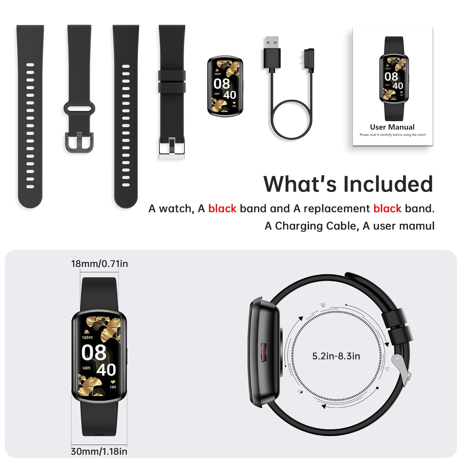 IP68 WATERPROOF: The fitness tracker boasts a waterproof design, allowing it to handle water droplets and sweat during daily activities, and it can even be worn while swimming, giving you the freedom to wear it in various environments.