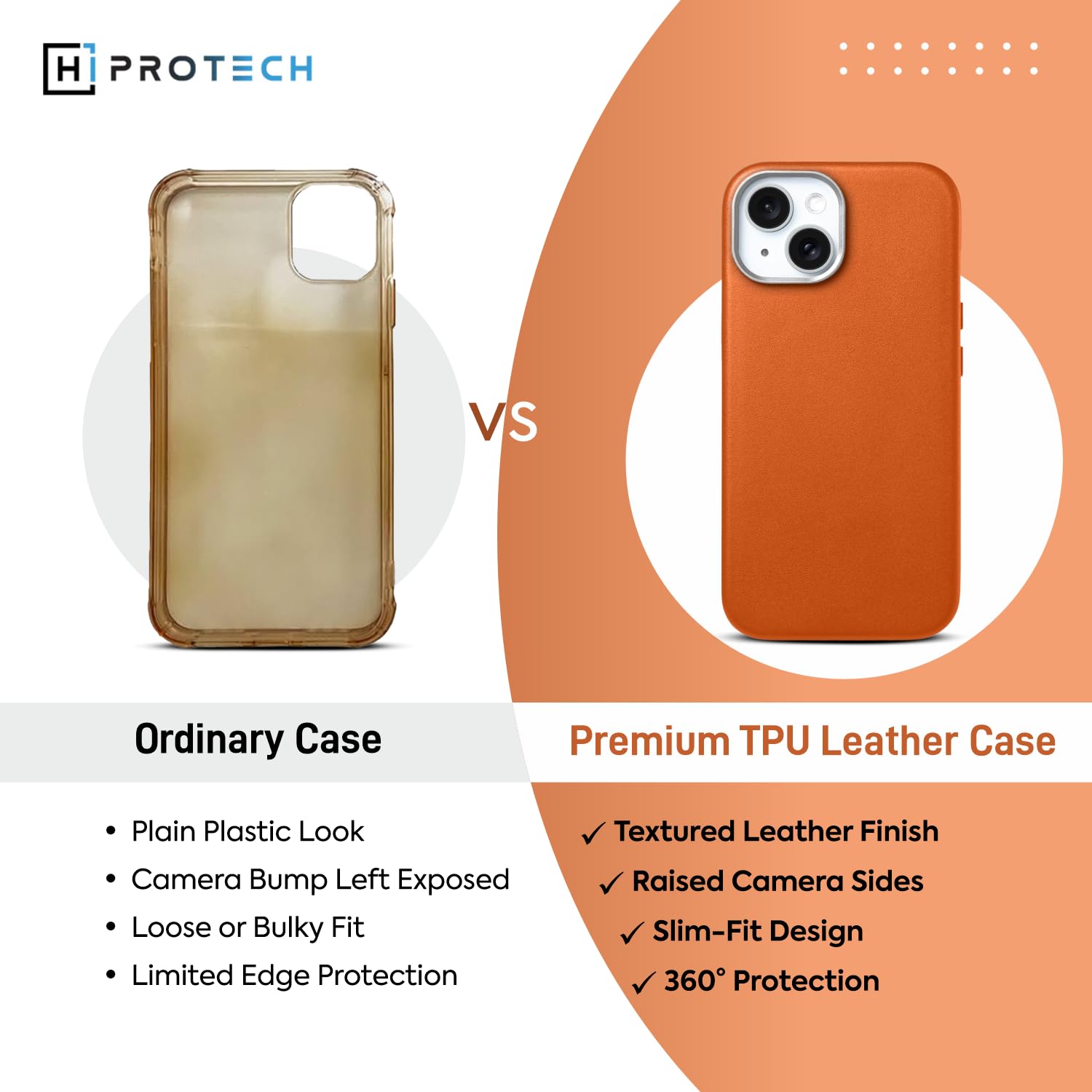 Hi-Pro Tech’s Premium TPU Leather Back Cover for iPhone 15 Plus combines style, comfort, and durability in one elegant package. Its flexible, soft-touch design offers a snug fit while raised edges protect your screen and camera. The slim profile maintains your phone’s sleek look, with precision cutouts for easy access to all ports and features. Ideal for those who want protection without compromising style.
