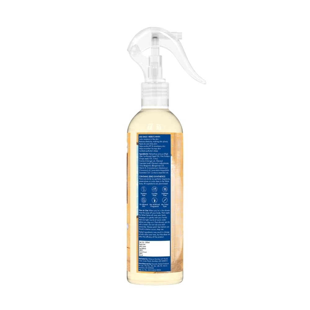 SEALS MOISTURE INSTANTLY: Velvet Spray effectively seals moisture in your skin when it is wet and the pores are clean and unclogged, giving you soft and moisturised skin. You don’t need to use any chemical-laden lotions or creams afterwards.