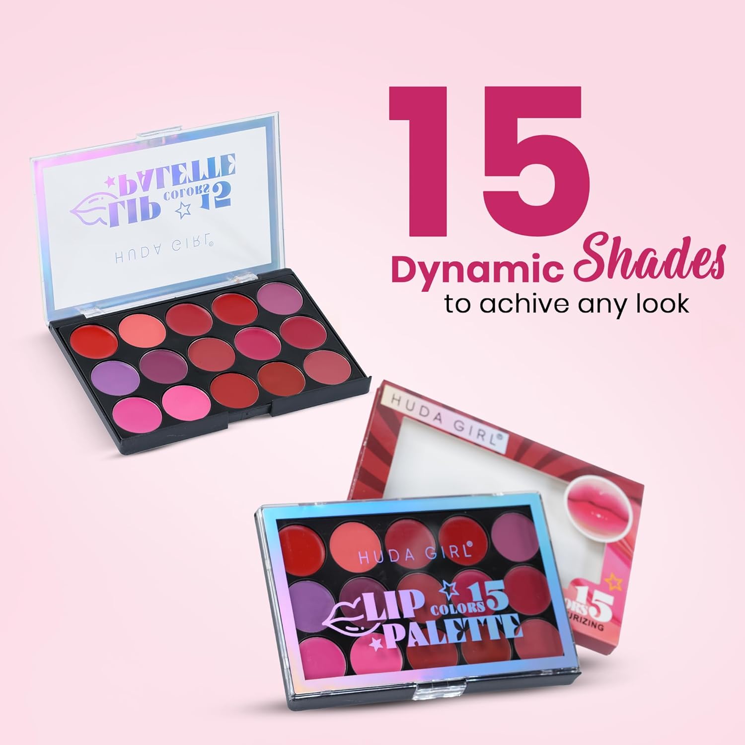 “Discover the world of color with HUDA GIRL’s 15 CLR LIP PALETTE, a meticulously curated collection that promises to cater to every mood and occasion. This lipsticks combo set is more than just a makeup accessory; it’s an experience tailored for women and girls who appreciate versatility and quality in their beauty routine. Our lipstick palette offers a range of stunning shades, from timeless nudes to bold statements, ensuring your lips are always the focal point. Whether you’re preparing for a day at the office or a night out, this nudeshade has got you covered. Each shade in this lipstick palette for women is designed to provide a smooth matte finish that feels as luxurious as it looks, leaving your lips with a rich, velvety texture. The HUDA GIRL lip palette doesn’t just stop at offering a variety of colors; it’s a complete matte lipstick with a waterproof formula that promises long-lasting wear. You won’t have to worry about frequent touch-ups, thanks to its enduring, smudge-proof quality. It’s the ideal lipsticks combo for those who lead a busy lifestyle but still want to look their best. Every detail of this matte lipstick has been thoughtfully designed with you in mind. The included pallete application ensures precision and ease, helping you achieve a flawless look every time. Whether you’re a makeup novice or a seasoned pro, this is your perfect companion, making application a breeze. Our lipsticks for women are crafted with care, understanding the diverse beauty needs of each individual. This lipstick combo set is perfect for those who love experimenting with different looks, offering both classic and contemporary options. Dive into the 15 clr lip pallete and express yourself with the confidence that only a quality lip stick for women can provide. Embrace the future of lip color with our matte lipsticks for women, a testament to HUDA GIRL’s commitment to empowering women through beauty. Let this lip pallete for women become your go-to choice, transforming your everyday routine into something extraordinary. Experience the difference with our matte lipstick, where every shade tells a story, and every application is an opportunity to shine.”