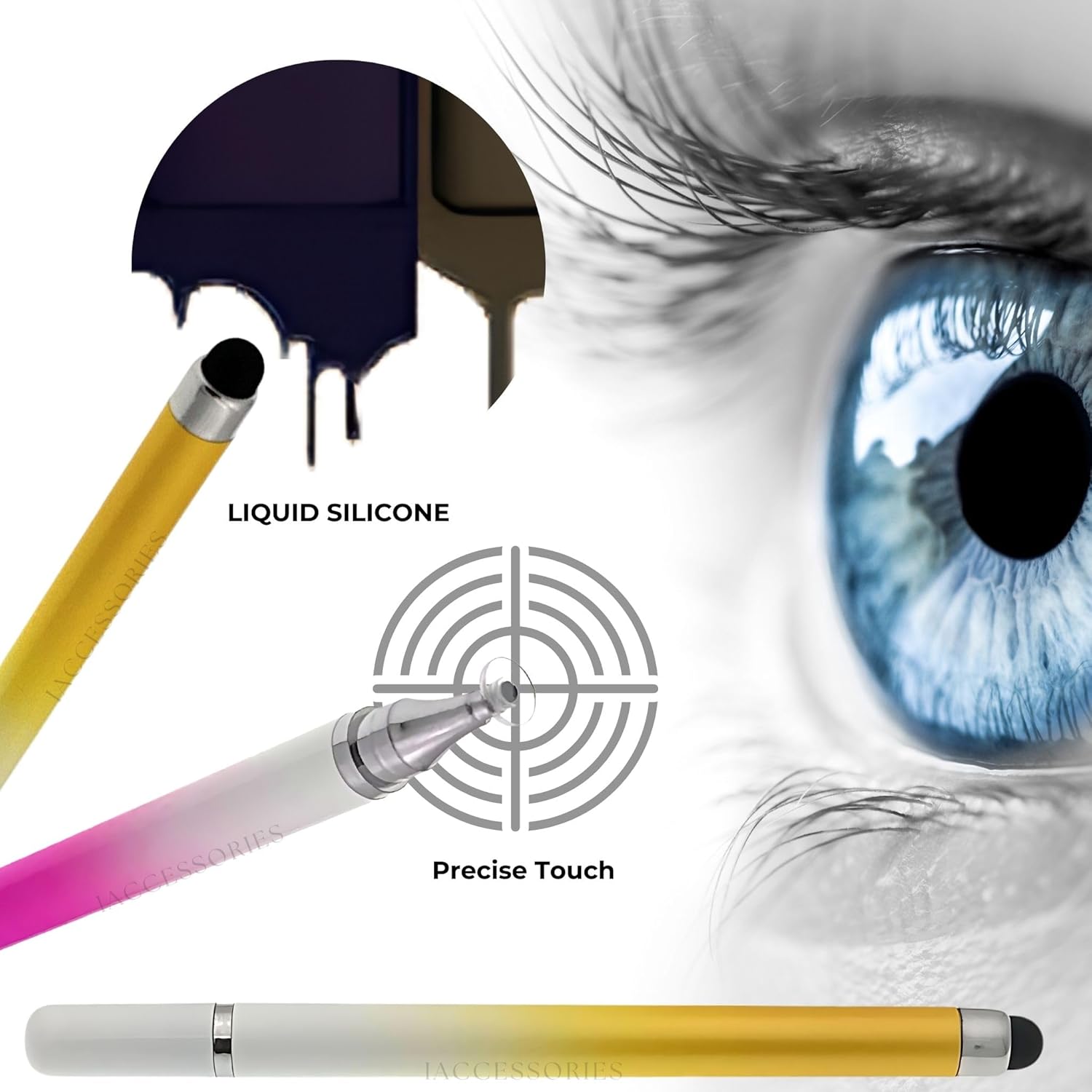 Experience ultimate precision and comfort with the iAccessories 2-Way Dual-Sided Stylus Pen, featuring a Silicon Fine Point Disc Tip and Silicone Round Tip. This Pink & Yellow-color combo pack perfect for enhancing your interaction with all touch screen devices. Designed for Android mobile phones, tablets, pads, and smartphones, these stylus pens offer smooth and accurate input, making them ideal for drawing, writing, and navigating. Enjoy a smudge-free and seamless touch screen experience with this stylish and versatile stylus pen set. Ergonomic Design: Comfortable to hold for extended periods, reducing hand fatigue and enhancing usability. Durable Construction: Made from high-quality materials, ensuring durability and long-lasting performance. Lightweight & Portable: Compact and easy to carry, making it convenient for use on the go. Stylish Appearance: A perfect blend of style and functionality, making these stylus pens an excellent gift for tech enthusiasts. Enhanced Productivity: Ideal for both professional and personal use, boosting productivity and efficiency on your touch screen devices.