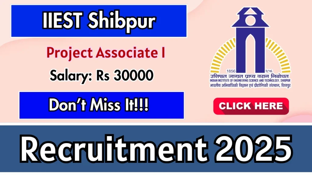 Tags: IIEST Shibpur Recruitment 2025, IIEST Shibpur Jobs 2025, IIEST Shibpur Job Openings, IIEST Shibpur Job Vacancy, IIEST Shibpur Careers, IIEST Shibpur Fresher Jobs 2025, Job Openings in IIEST Shibpur, IIEST Shibpur Sarkari Project Associate I Recruitment 2025, IIEST Shibpur Project Associate I Jobs 2025, IIEST Shibpur Project Associate I Job Vacancy, IIEST Shibpur Project Associate I Job Openings, B.Tech/B.E Jobs, M.E/M.Tech Jobs, West Bengal jobs, Malda jobs, Kharagpur jobs, Burdwan jobs, Midnapur jobs, Howrah jobs