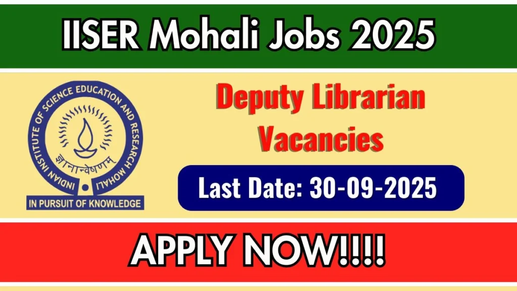 Tags: IISER Mohali Recruitment 2025, IISER Mohali Jobs 2025, IISER Mohali Job Openings, IISER Mohali Job Vacancy, IISER Mohali Careers, IISER Mohali Fresher Jobs 2025, Job Openings in IISER Mohali, IISER Mohali Sarkari Deputy Librarian Recruitment 2025, IISER Mohali Deputy Librarian Jobs 2025, IISER Mohali Deputy Librarian Job Vacancy, IISER Mohali Deputy Librarian Job Openings, M.Phil/Ph.D Jobs, M.Lib Jobs, Punjab jobs, Ludhiana jobs, Mansa jobs, Moga jobs, Mohali jobs, Muktsar jobs