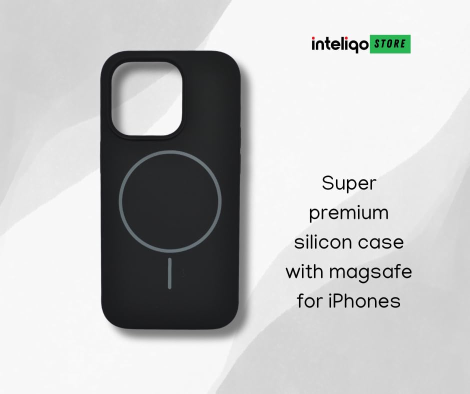 Inteliqo Super Premium Silicone case, Compatible with Apple iPhone 14 Pro Max, Magnetic, with Microfiber Lining, Soft Grip Silicone (Black) and with Free Lens Protector