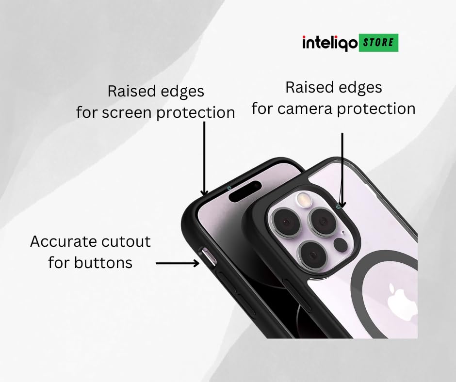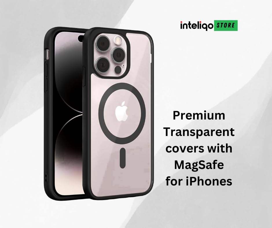 Inteliqo transparent cover for iphone 15 pro, Black, compatible with magsafe, corner air bag for drop protection