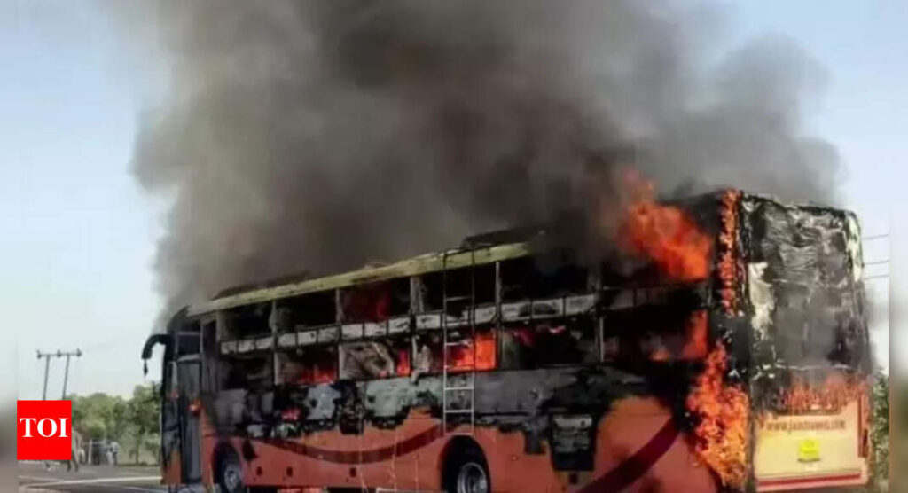 JAISALMER: The death toll in the tragic fire accident involving a sleeper bus, travelling from Jaisalmer to Jodhpur, rose to 21 on Wednesday. Ten-year-old Yunus succumbed to his injuries during treatment at Mahatma Gandhi Hospital in Jodhpur earlier this morning. Four other patients remain on ventilators in a critical condition at the hospital.The govt, meanwhile, suspended acting district transport officer (DTO) Surendra Singh and assistant administrative officer Chunni Lal of Chittorgarh transport department, who approved the modified body of the bus.Police filed an FIR based on a complaint filed by the brother of journalist Rajendra Chauhan, a victim of the accident, against the bus owner and driver at the Sadar police station in Jaisalmer. DNA samples are also being collected at hospitals in Jodhpur and Jaisalmer to identify the victims. Blood samples from 10 family members have been taken in Jaisalmer and sent to Jodhpur for testing.Meanwhile, Rajasthan high court Wednesday directed the regional transport officer (RTO) and DTO to inspect and ensure that all govt and private buses were operating as per regulations in Jodhpur. Directions were also issued to Jodhpur police commissioner to provide compensation to the dependents of the deceased and injured victims.According to special FSL and DNA expert teams from Jaisalmer and Jodhpur, the body of the bus remained extremely hot even eight to nine hours after the accident, making it difficult for them to enter the vehicle and collect samples.Team members described the scene inside the vehicle as shocking, with bodies stuck to seats and only skeletons visible on the burnt upholstery. Since many bodies were reduced to ash, they said the actual toll could be higher.Health minister Gajendra Singh Khimsar said the bus had only one door in the front instead of the mandatory two exits.
