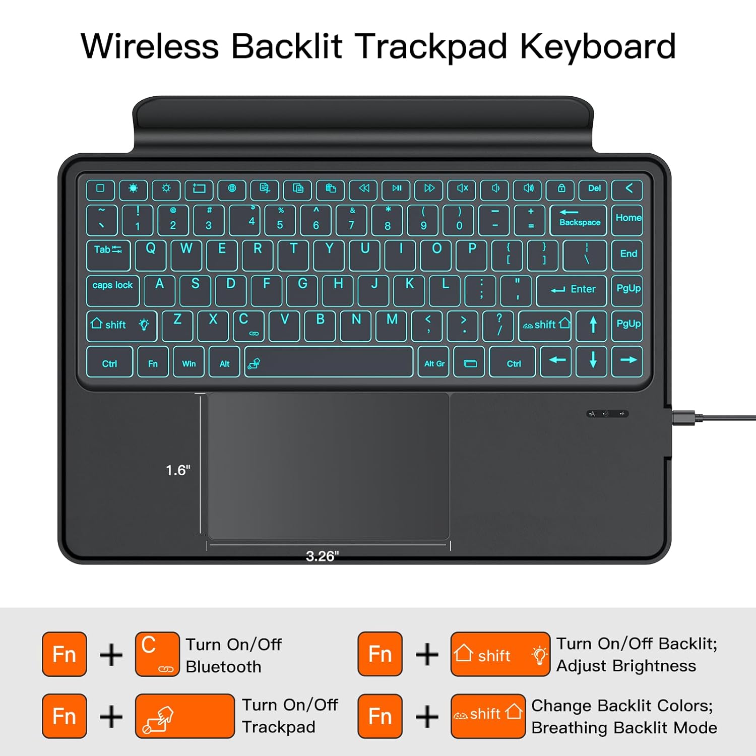 ✔【Touchpad and 7-colour backlight】Keyboard case with multi-touch trackpad, you can control the cursor like a laptop without a mouse. Mouse and keyboard are two in one, which is convenient for learning and working. 7 colors and 3 brightness levels of backlight make writing in the dark and at night fun and easy. You can change the backlight of breathing and adjust the frequency.