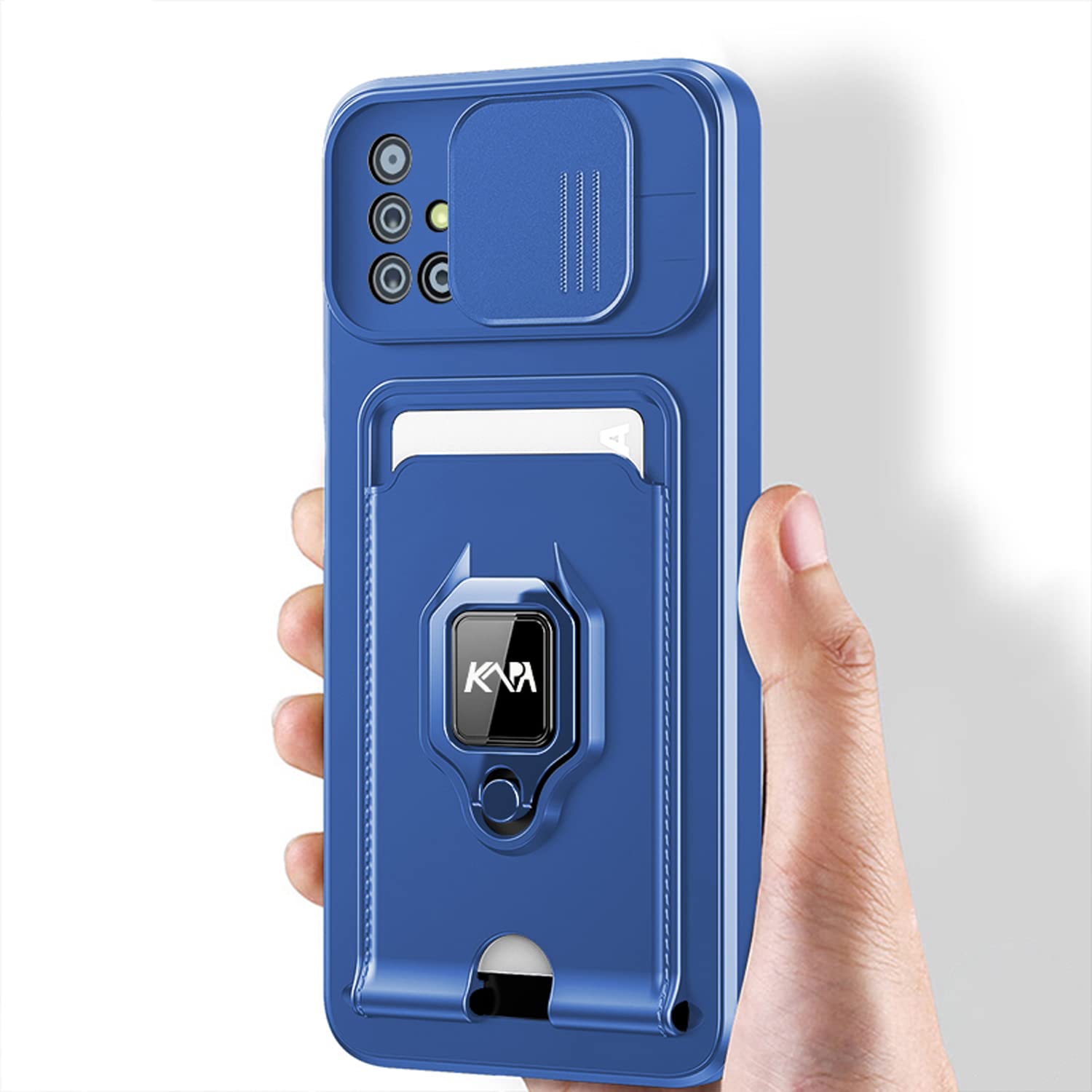 Kapa Bisen Back Cover for Samsung Galaxy A71, Inbuilt Camera Slider Ring Stand and Card Pocket Shockproof Slim Bumper Back Case (Blue)