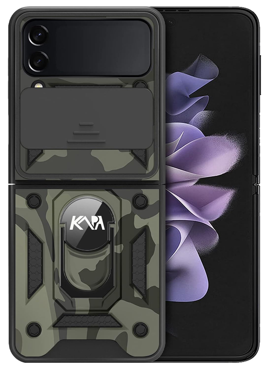 KAPA Tank Back Cover for Samsung Galaxy Z Flip 4, Ring + Slider Shockproof Lens Protection Case (Black)