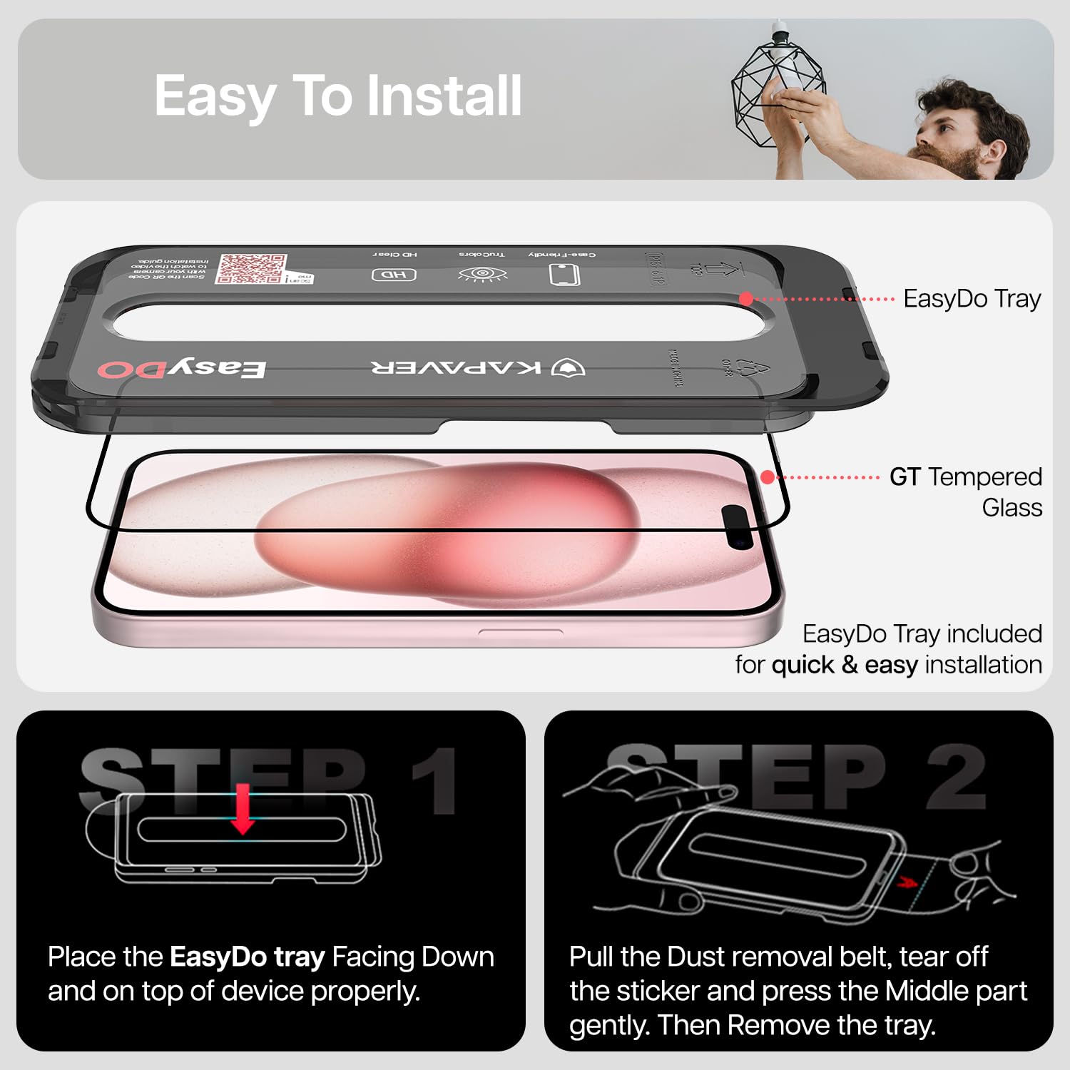 EASY INSTALL KIT FOR PERFECT, BUBBLE-FREE ALIGNMENT :The newest GLaS HD Easy DO comes with an innovative tray designed to eliminate the time wasted to achieve the greatest alignment. Simply place the tray over the phone, press the center and watch the glass adhere in place.