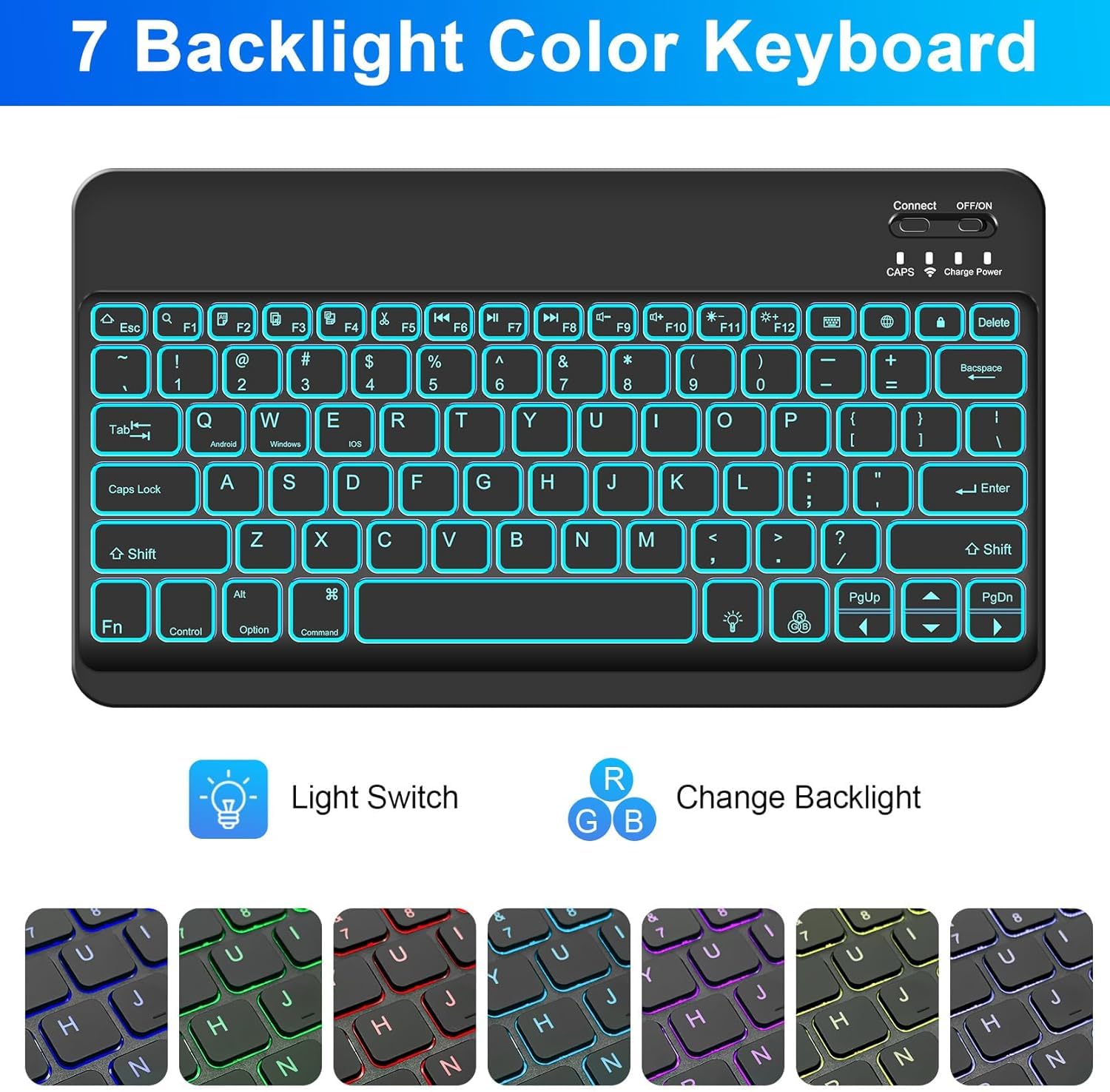 JUQITECH Keyboard Case Compatible with Samsung Galaxy Tab S10+ Plus/ S9FE Plus/ S9 Plus/ S9+ /S8+ /S8 Plus /S7 FE /S7 Plus /S7+ 12.4 Inch, 7 Colors Backlit, Detachable Wireless Keyboard Case with S Pen Holder