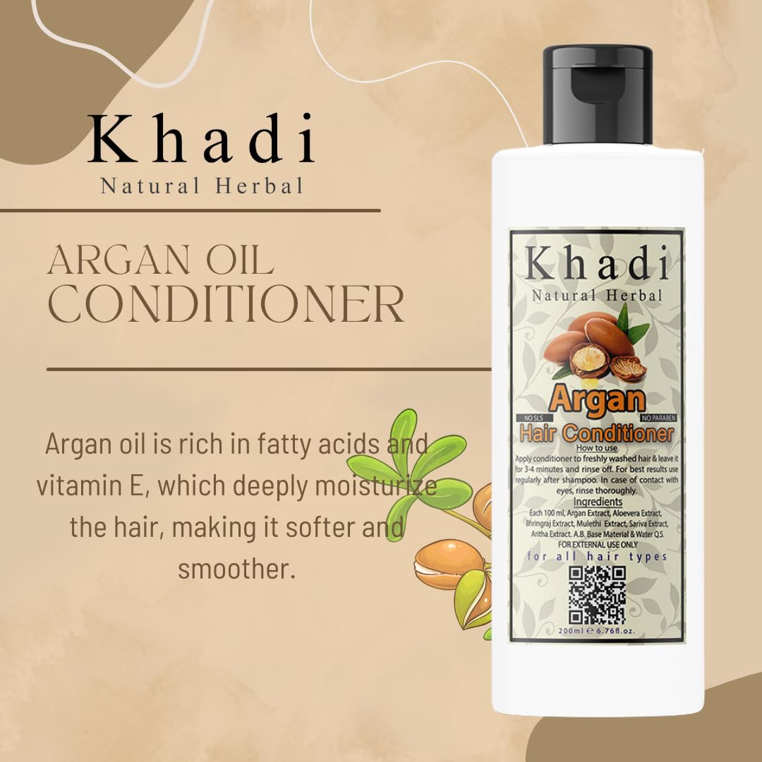 How to use : Take Khadi Natural Herbal Argan Conditioner on to palm, then apply to wet hair. Then massage gently on scalp and work on to lather. Then rinse off with water. Repeat if needed.