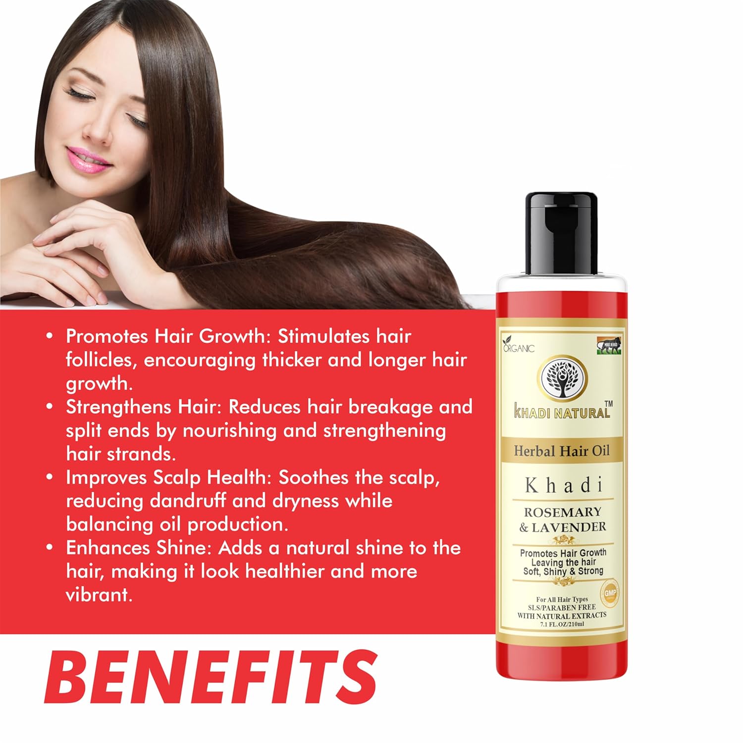 Unleash the natural beauty of your hair with Khadi Natural Herbal Rosemary & Lavender Hair Oil. This exquisite blend of rosemary and lavender extracts offers a nourishing and aromatic hair treatment that revitalizes your locks from root to tip. The powerful combination of rosemary and lavender strengthens your hair, making it more resilient and enhancing its natural shine. It’s the perfect solution for those seeking to improve hair texture and overall hair health. In addition to its hair benefits, the soothing aroma of lavender and rosemary provides an aromatherapeutic experience that calms your mind and balances your scalp. It effectively reduces scalp irritation and dryness. Khadi Natural Herbal Rosemary & Lavender Hair Oil is crafted with 100% natural ingredients, ensuring that your hair receives the care it deserves without exposure to harmful chemicals, additives, or artificial fragrances. With a generous 210 ML size, this bottle ensures long-lasting nourishment and care for your hair. Elevate your haircare routine with Khadi Natural and rediscover the joy of having strong, shiny, and healthy hair.
