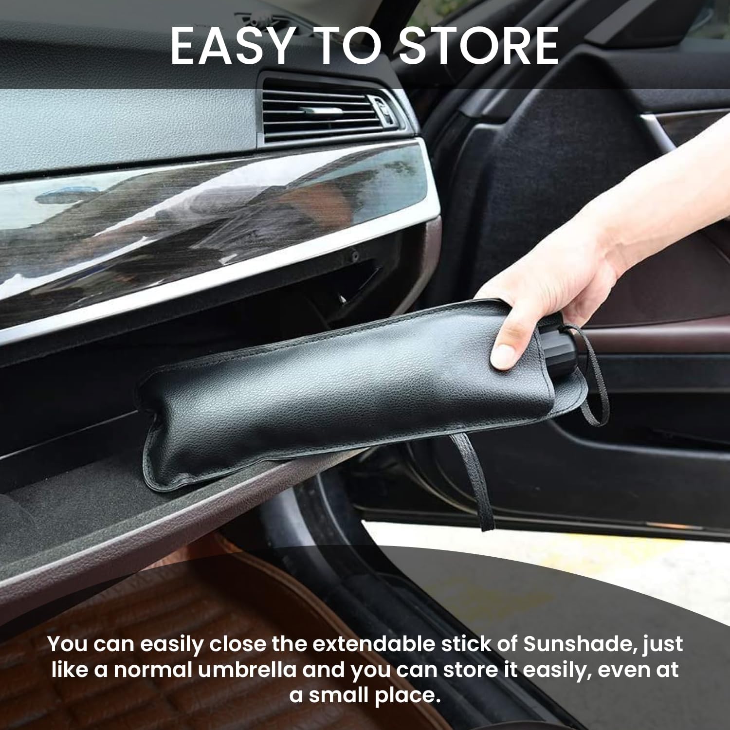 Easy to Fold and Store: The innovative foldable design makes it simple to use and store. Open and close the sunshade effortlessly, and tuck it away in the included leather storage bag for convenient, space-saving storage.
