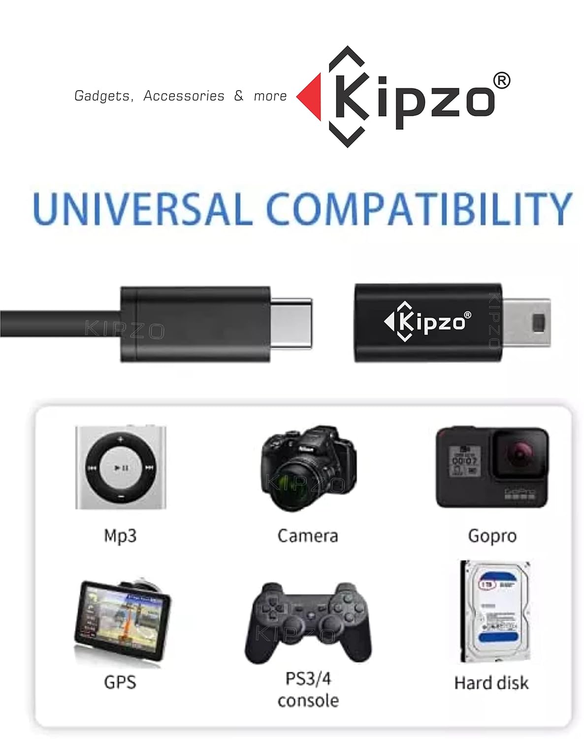 ☑️ Kipzo USB C to mini usb adapter charges and transfers data to Mini USB devices through standard high-quality USB C-type data cables.