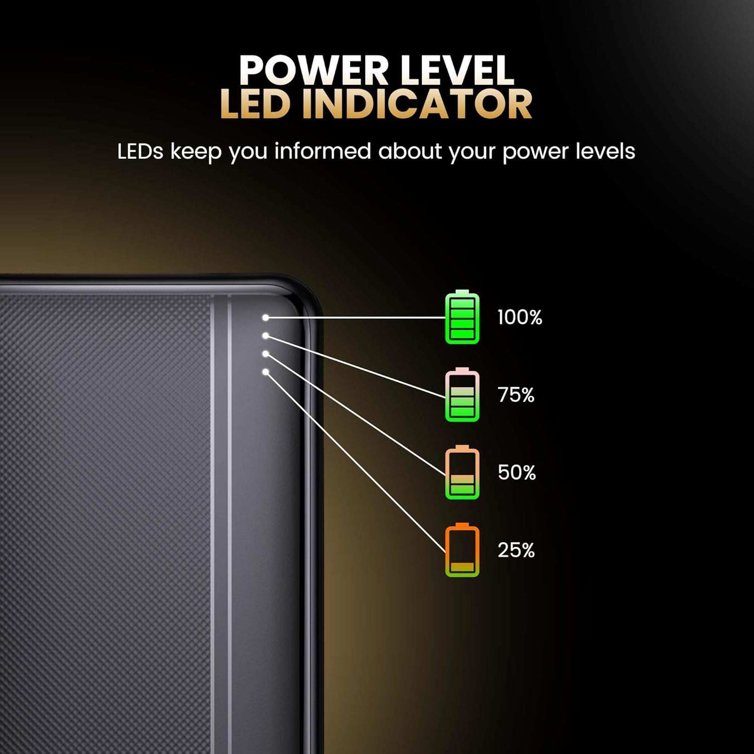 LED Battery Indicators : The fast charging power bank comes with an LED battery indicator, keeping you updated on its charge level and your device’s status. Product comes with complimentary cable for easy charging between your powerbank and device