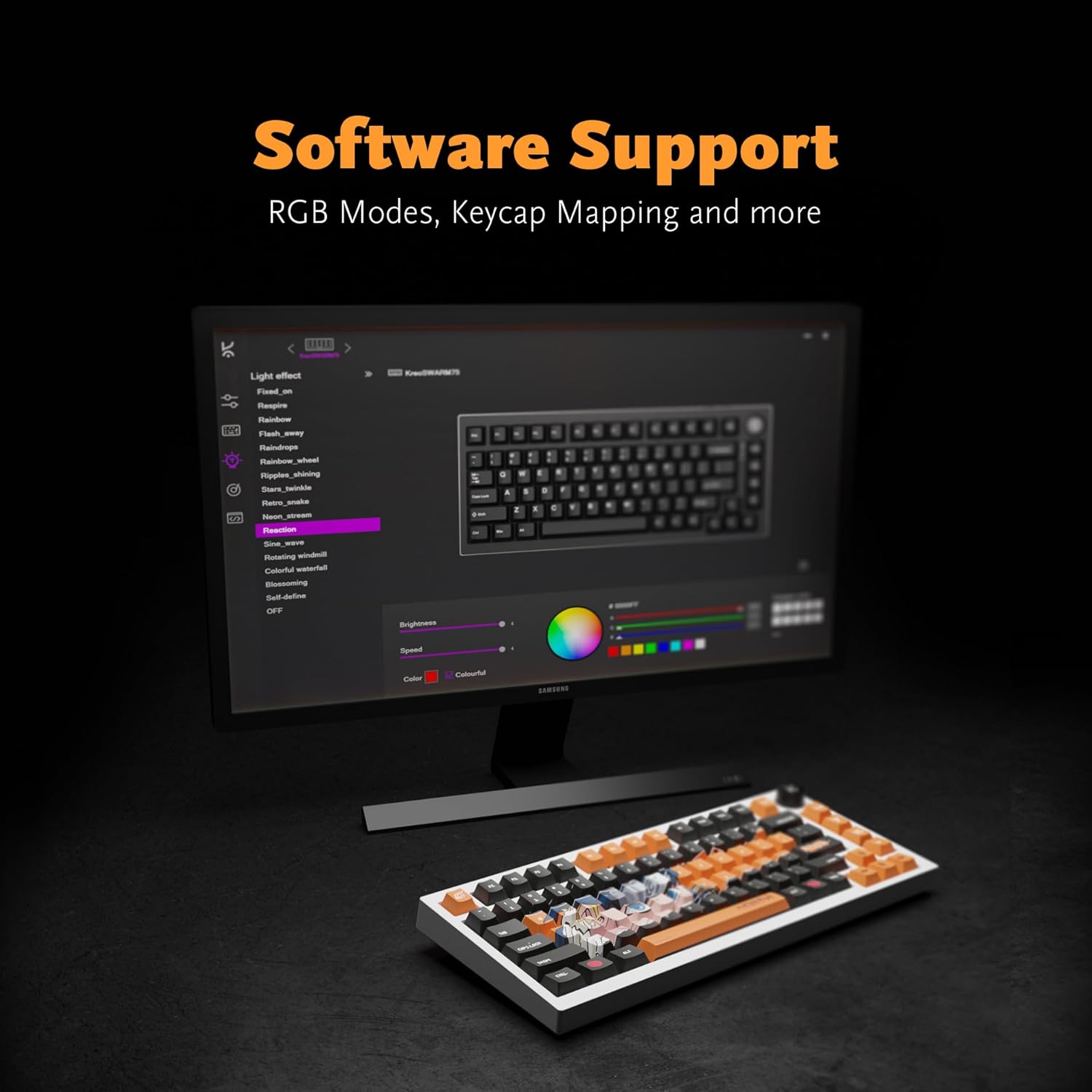 🛜 Truly Wireless Mechanical Gaming Keyboard with Software Support: Kreo Swarm supports both wireless and wired connections. It comes with Bluetooth and 2.4GHz support along with a USB-C port for wired connection and charging. Swarm’s Bluetooth connection supports 3 devices at the same time for increased productivity and convenience. It also comes with robust software support for effortless customization of RGB lighting, key mapping, and macros to enhance your gaming experience!