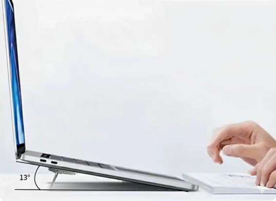 The stand is crafted from silver alloy, engineered for strength and durability. Its dual‑gear adjustment enables precise height control to suit varying laptop sizes. The frame’s ergonomic shape allows for natural arm placement, while the lightweight construction ensures portability.