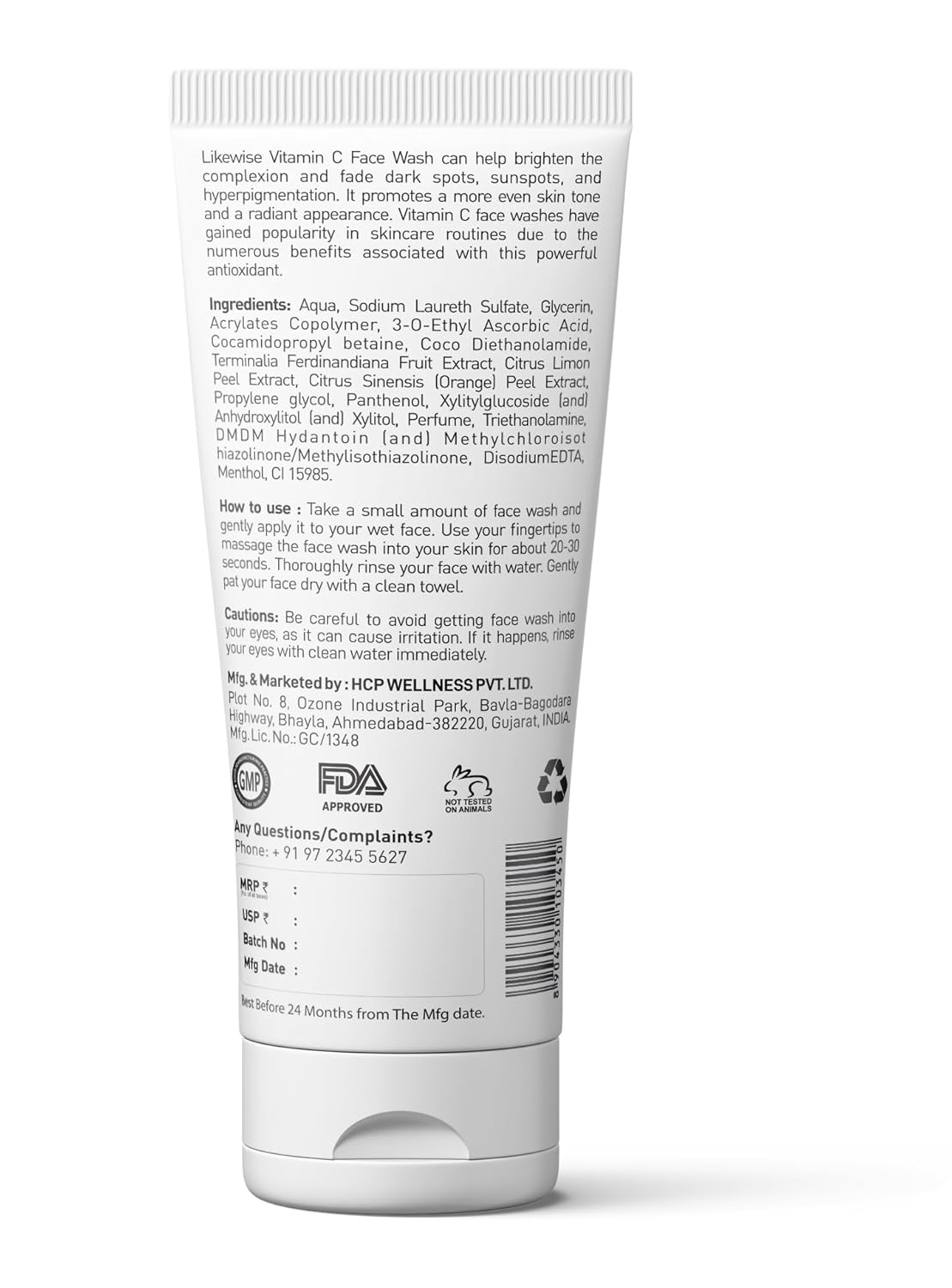 Likewise Vitamin C Face Wash For Glowing Skin | Tan Removal Face Wash For Dry, Oily, Acne Prone & Combination Skin | Women & Men | 100ml