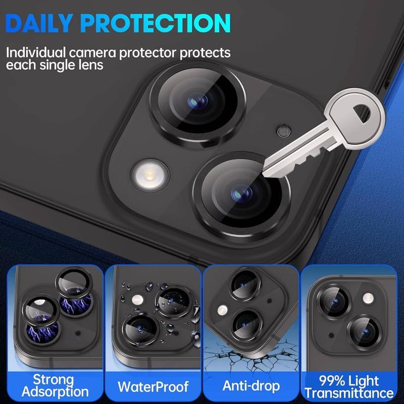 ✔️Daily Perfect Protection Alloy individual ring with 9H Hardness camera screen protectors full cover each camera lens, effectively protect lens from drops, scratches and other accidental damages of your daily life.