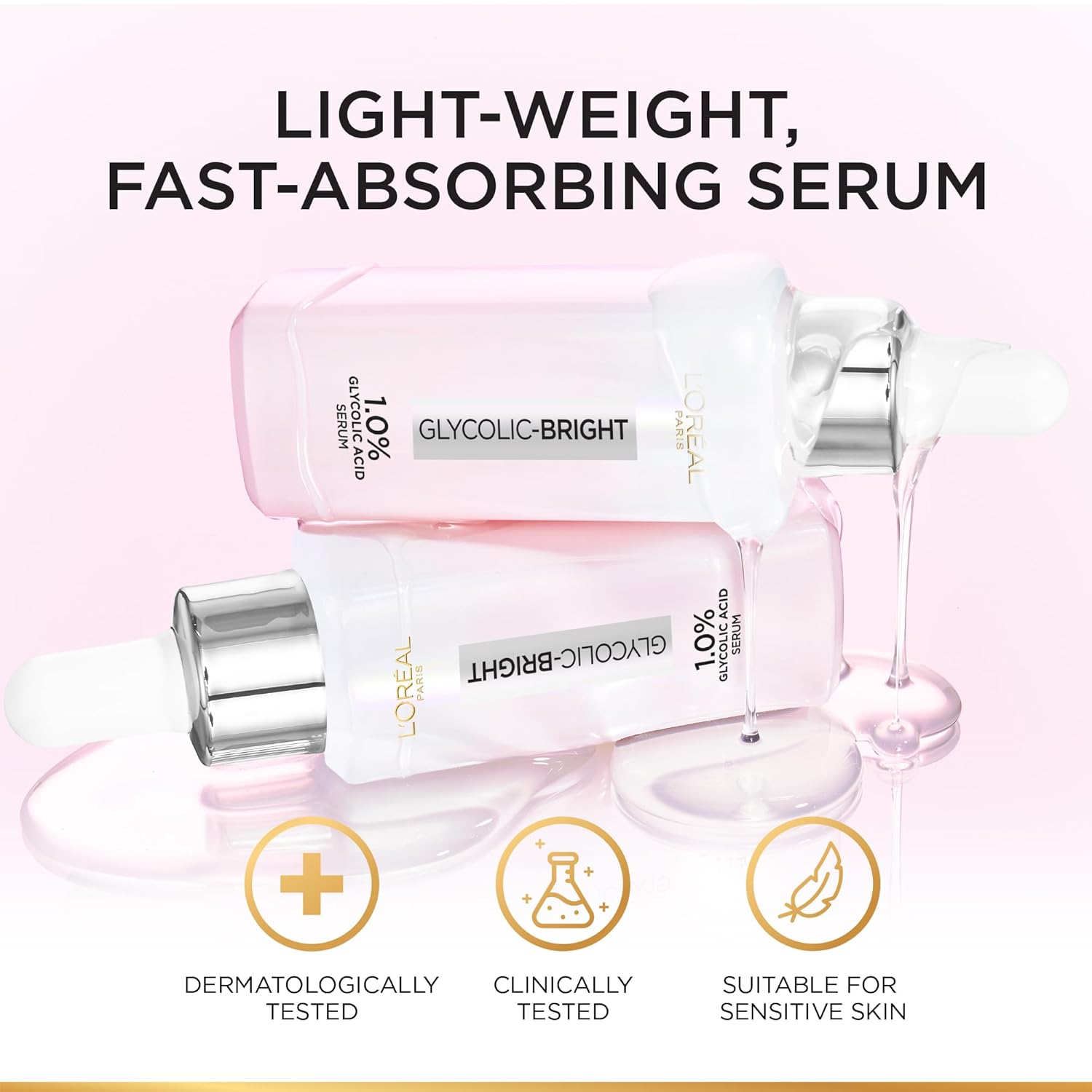 L’Oréal Skincare Laboratories developed INSTANT GLOWING SERUM formulated with 1.0% Glycolic Acid. Clinically proven to brighten skin and visibly reduce dark spots.
