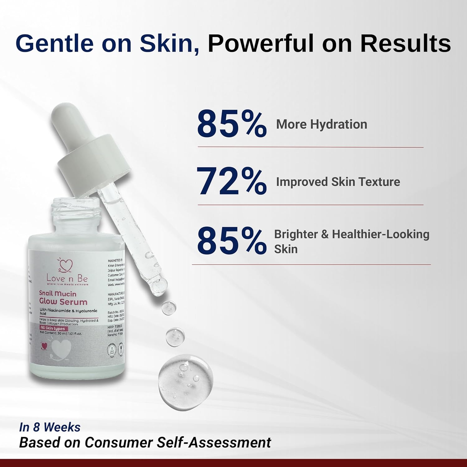 Snail Mucin Repair: Promotes skin regeneration, improves elasticity, and reduces fine lines for a youthful glow.
