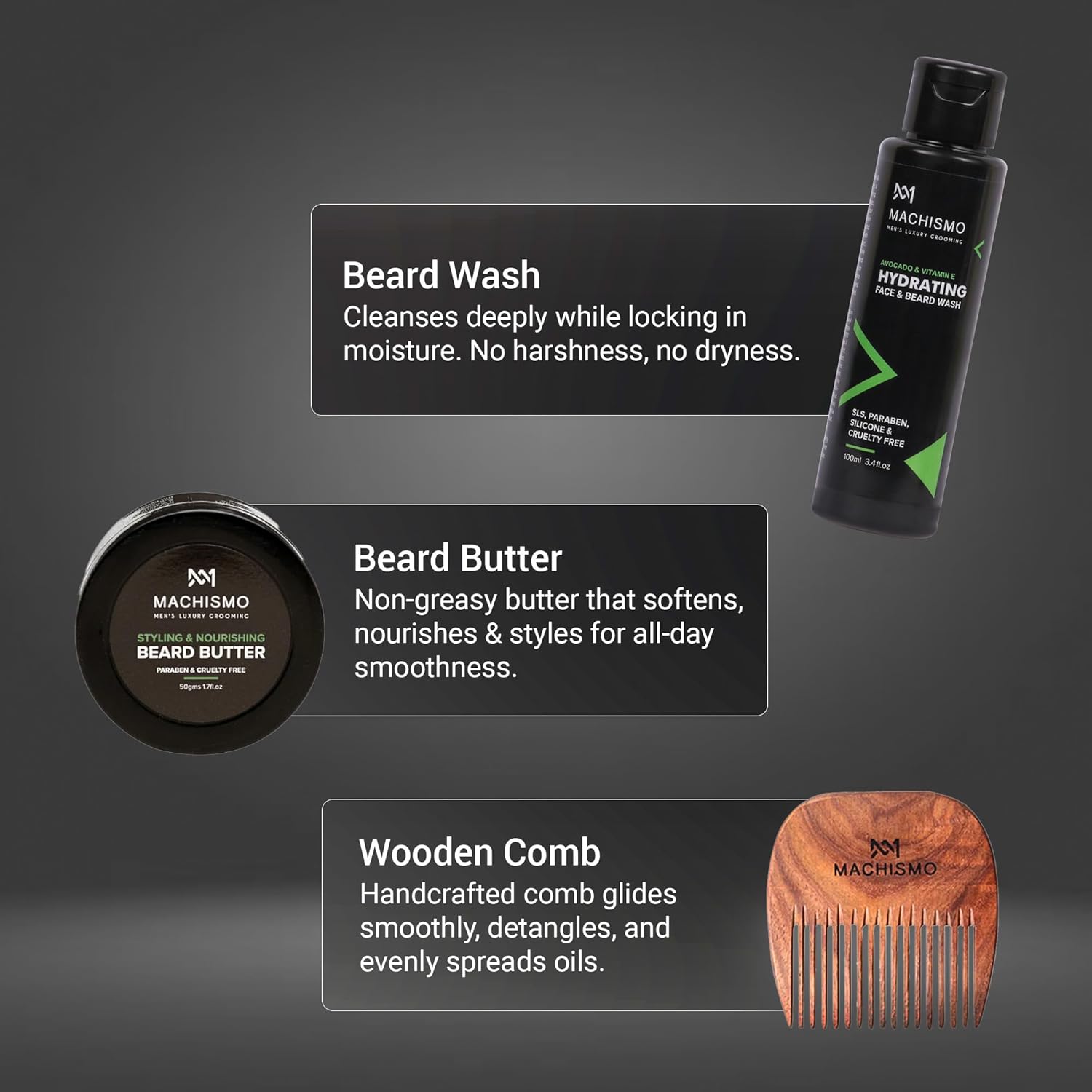 5. Machismo Beard Care Kit – SLS Free, Paraben Free & Cruelty Free. Made with quality ingredients to support men’s grooming needs, offering confidence, nourishment, and care in every routine.