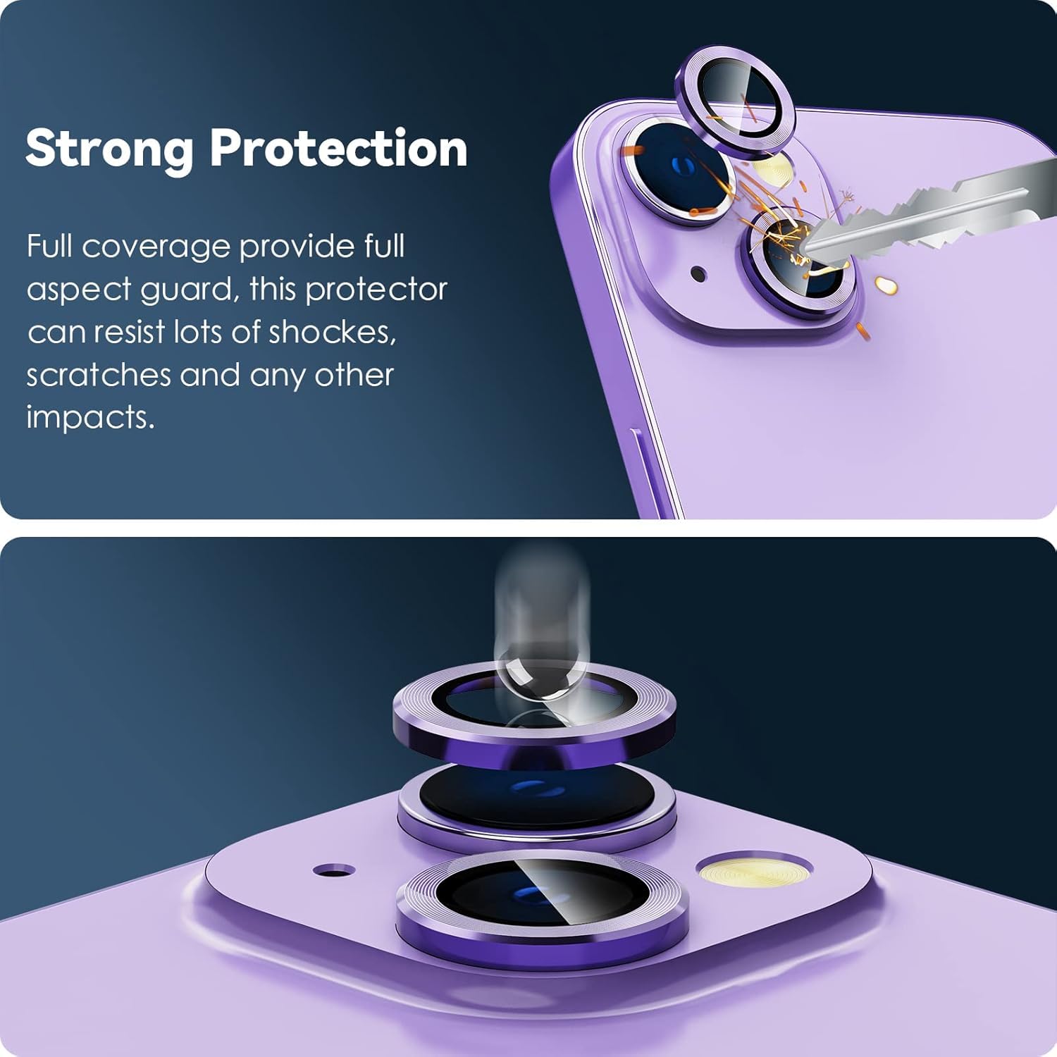 MAHIX ( PACK OF 2 Camera Lens Protector For IPHONE 14/14 PLUS, IPHONE 15/15 PLUS (PURPLE) UHD 9H Glass, Anti Drop, Case Friendly, Waterproof, Heavy Duty Camera Protector, SET OF 2