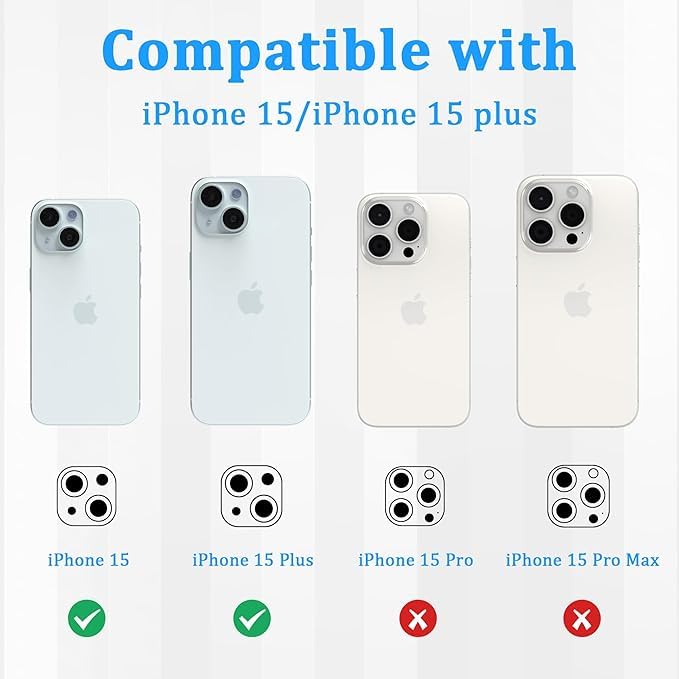 [Snug-Fit] Adopt 1:1 precise cutting to perfectly fit the camera lens of iPhone 15 6.1-inch and iPhone 15 Plus 6.7-inch. Only 0.12 mm higher than original profile and leave enough edge space to work well with most phone cases
