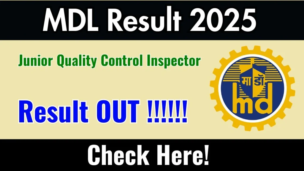 On 04-08-2025, MDL Junior Quality Control Inspector Result 2025 is out! MDL Junior Quality Control Inspector Result 2025 released on mazagondock.in. MDL has conducted the exam for Junior Quality Control Inspector in various centers across the country/state. Candidates can check and download their results by visiting the mazagondock.in.