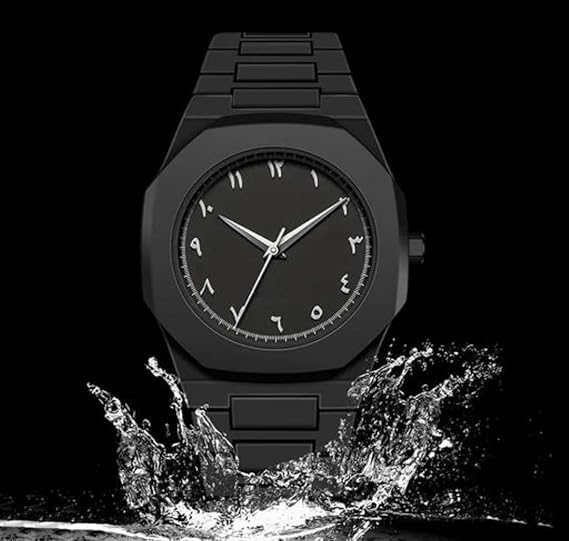 Elevate your wristwear with this ultra-modern matte black men’s wristwatch featuring Eastern Arabic numerals. A true fusion of minimalist design and cultural detail, this timepiece is crafted from durable stainless steel with a smooth, brushed finish. The analog dial showcases striking black hour and minute hands for a monochromatic aesthetic that’s both subtle and bold. Perfect for everyday elegance or as a unique gift, this watch is a conversation starter with timeless appeal.