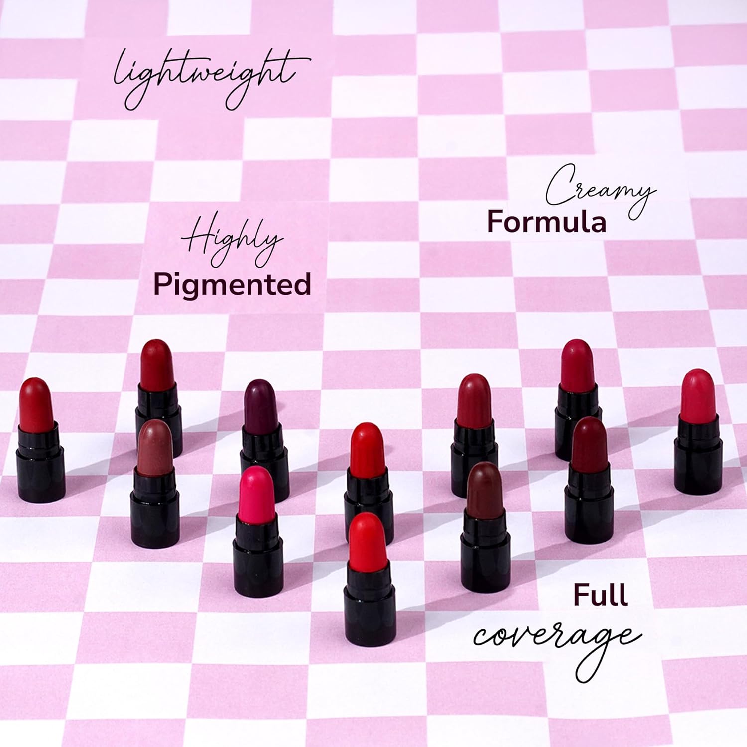 Mila Beauté 12 Creamy Matte Mini Pout Party Lipstick Kit | Lip Hydrating & Light-weight | Long Lasting Lipsticks for Women | Suitable All Indian Tones | Shade - Browns & Reds 12g