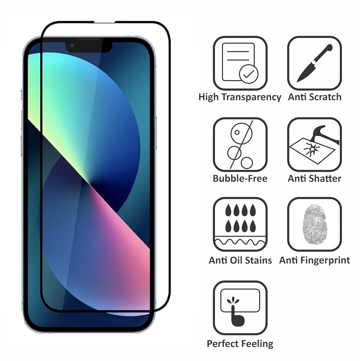 Compatible Device : iPhone 13 / iPhone13 Pro / iPhone 14 / iPhone 16e I Area of Coverage : Cover Full Screen (Black) Edge to Edge