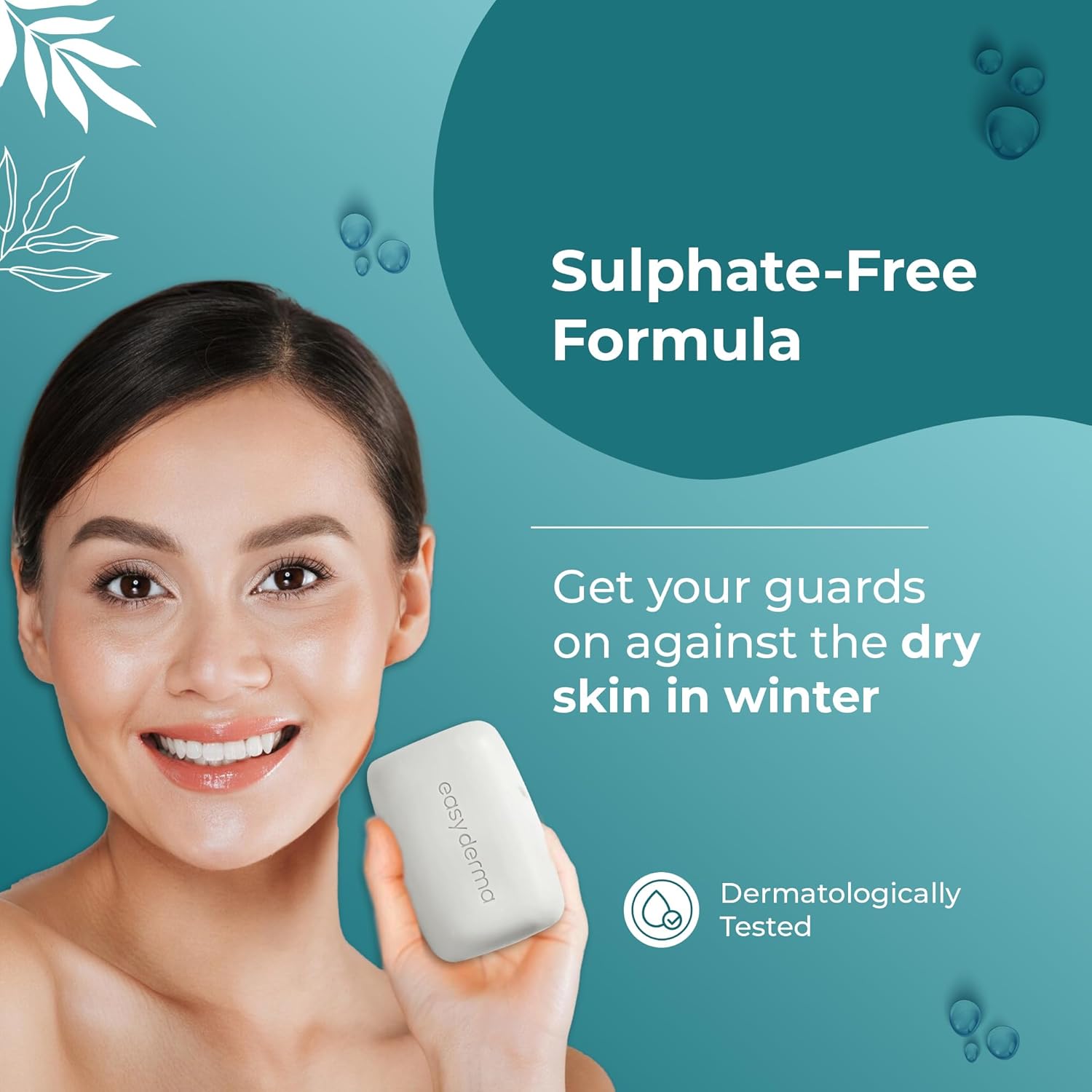 INTENSE MOISTURIZATION FOR DRY SKIN: Easyderma Moisturizing Bathing Soaps are specially designed to deeply hydrate and nourish skin after every wash. This moisturizer soap helps restore lost moisture, leaving your skin soft, supple, and refreshed throughout the day. Perfect for dry, rough, and flaky skin, it makes your daily bath feel like a nourishing skincare ritual.