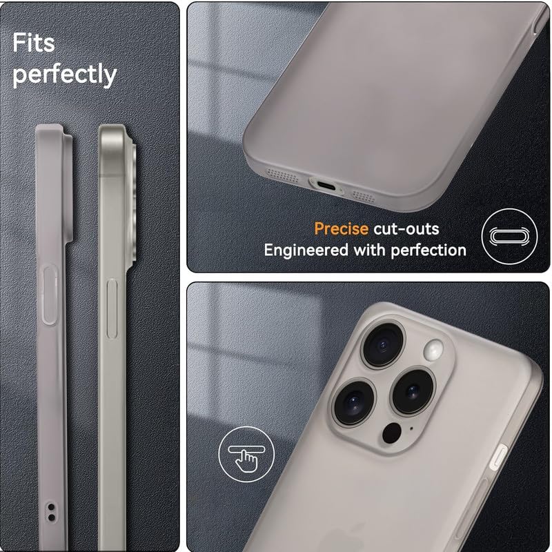 Protect your Phone in style with this Ultra-Thin Frosted Matte Hard Case. Designed with a minimalist aesthetic, this case features a slim, lightweight build that adds virtually no bulk to your device. The matte finish not only provides a sophisticated look but also resists fingerprints and smudges for a cleaner appearance.Crafted from anti-yellow polycarbonate, the hard back keeps your phone safe while maintaining long-lasting clarity. Precise cutouts ensure easy access to all buttons, ports, and features, making it perfect for daily use. Whether you’re at work or on the go, this case offers sleek protection that complements your iPhone’s design.