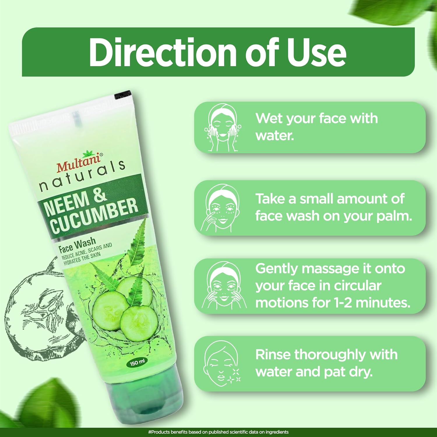 Method of Application: All hands for the ultimate Multani Naturals Neem & Cucumber Face Wash. Just apply on a wet face and work up a foamy lather. Rinse well and use daily.