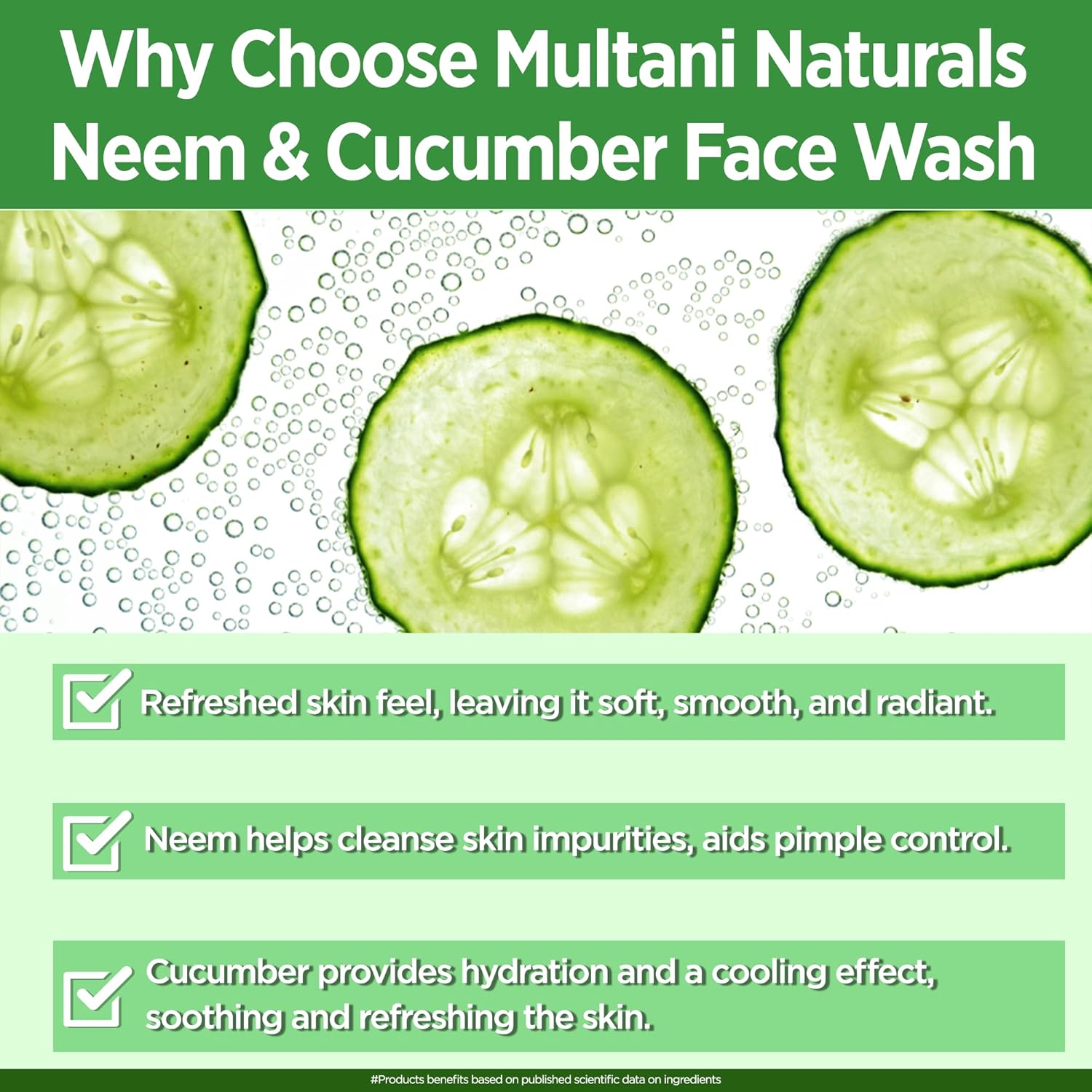 Detox & Rejuvenate skin: Unlock the secrets to a clear skin with Multani Naturals Neem & Cucumber Face Wash. Harnessing the skin purifying properties of Neem, Make this face wash your daily skin detox for cleansed and refresh skin feel.