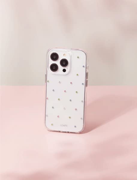 Clear protective case with embedded 3D crystals in complementary colours for added sparkle and texture