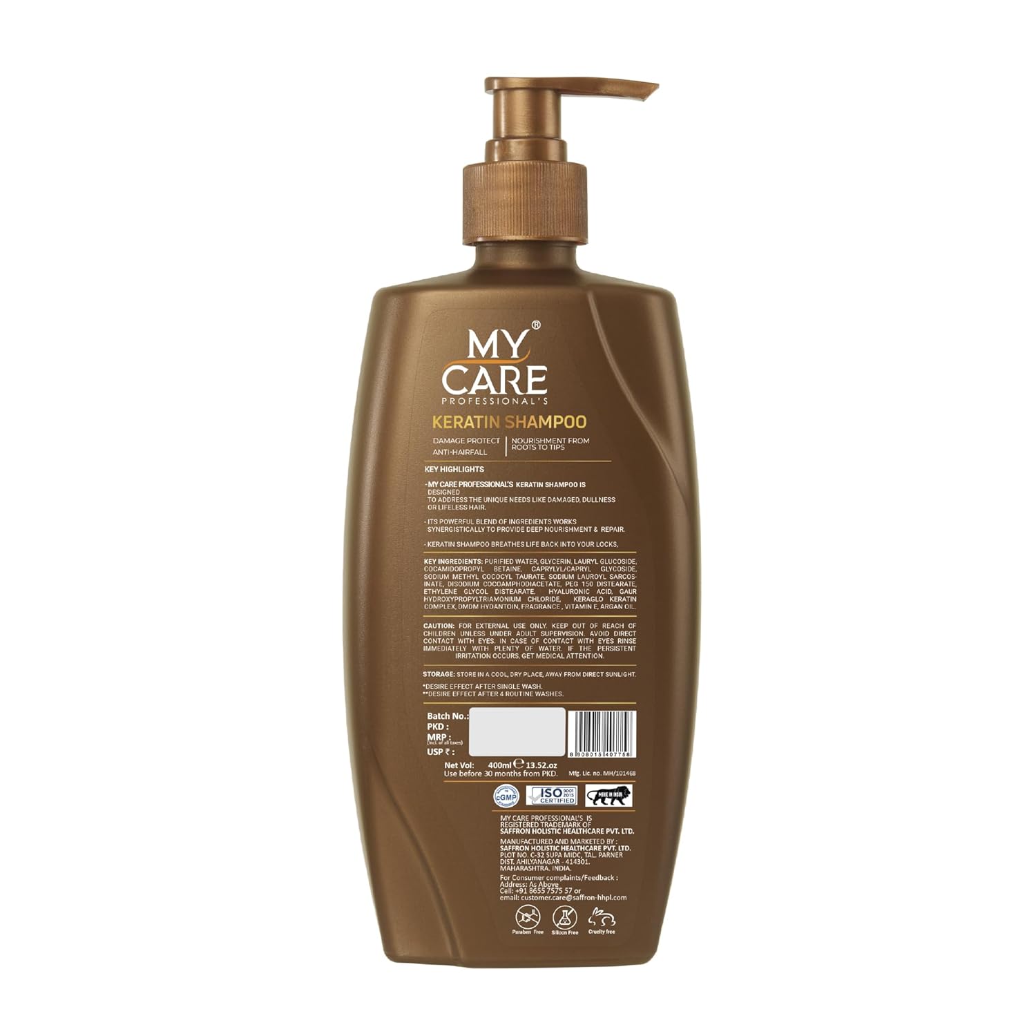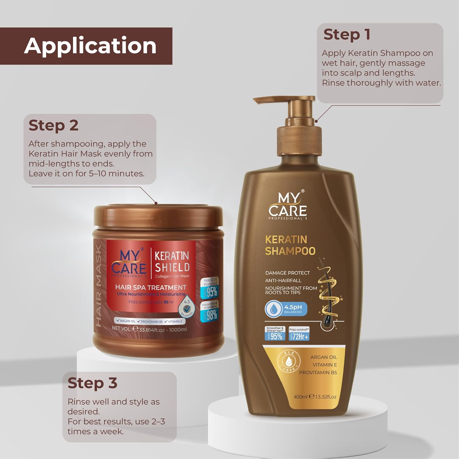 My Care Professional Keratin Hair Smoothening Shampoo 400ml |Salon-Like Smooth Hair 95% | Up To 72H Frizz Control | With Keratin Protein and Argan Oil | Vitamin E & Provitamin B5 | Damage Protect | Anti Hair fall | pH Balanced & Sulphate Free. 400ml