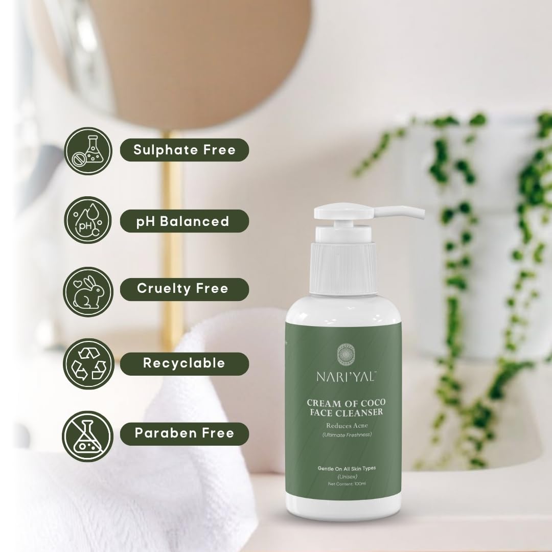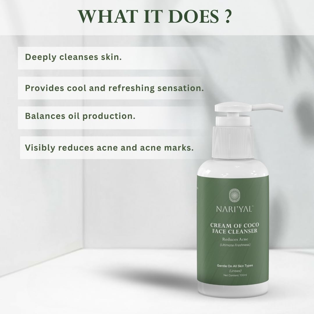 Nariyal Cream Of Coco Face Cleanser, Refreshing Daily Wash For Men & Women, Gentle Facial Cleansing For Acne-Prone, Oily & Combination Skin, Sulfate & Paraben-Free, Deep Pore Cleansing Formula